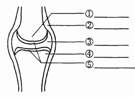 (2)①关节头 ②关节囊 ③关节腔 ④关节窝 ⑤关节软骨 关节面 关节囊 关节腔 关节腔 关节囊 关节腔 摩擦