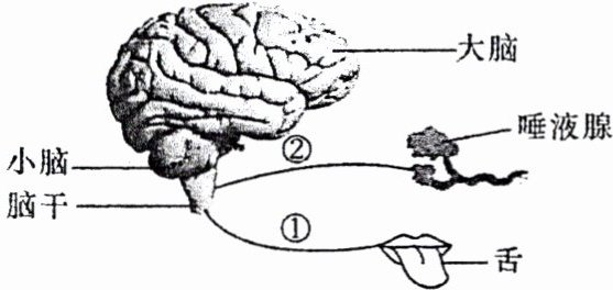 反射,请用图中文字、数字和箭头表示该反射活动的传导途径舌→①→脑干→②→唾液腺