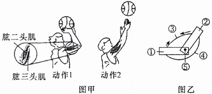 )A.图甲中动作1到动作2的过程,肱二头肌收缩、肱三头肌舒张