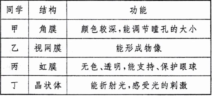 ②进入眼睛的光依次通过角膜、瞳孔、晶状体和玻璃体