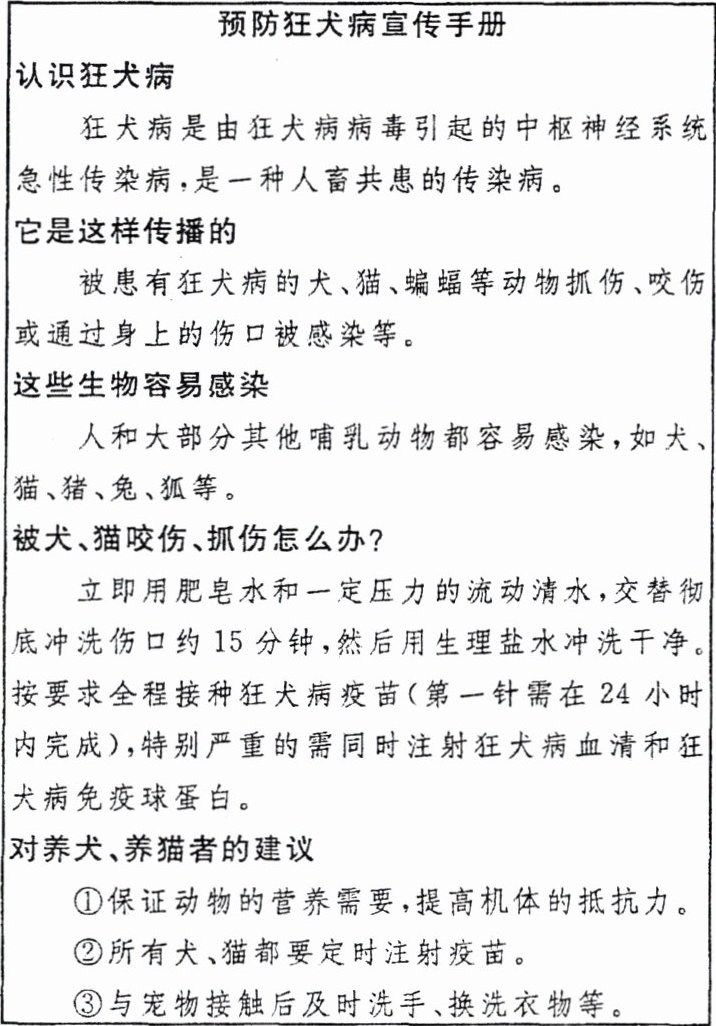(3)从传染病预防措施来看,对养犬、养猫者的建议中属于切断传播途径的是