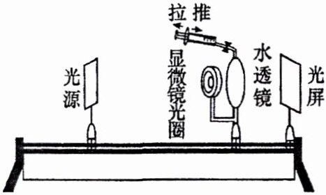,使物像更明亮。(3) 项目小组的同学用该装置探究人体如何通过调节晶状体曲度看清远近的物体。他移动水透镜并记录光源与水透镜的距离,随后推拉注射器使物像清晰,记录水透镜的曲度变化。该操作过程是否严谨?请判断并说明理由。
