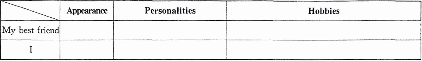 Who is your best friend? Compare the appearance, personalities, and hobbies between you and your best friend. Then fill in the form.