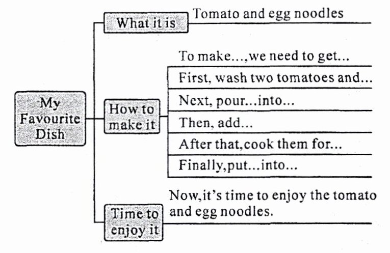 Hi! My favourite dish is tomato and egg noodles. They are really delicious. ①Here's how to make it. Let's have a try.