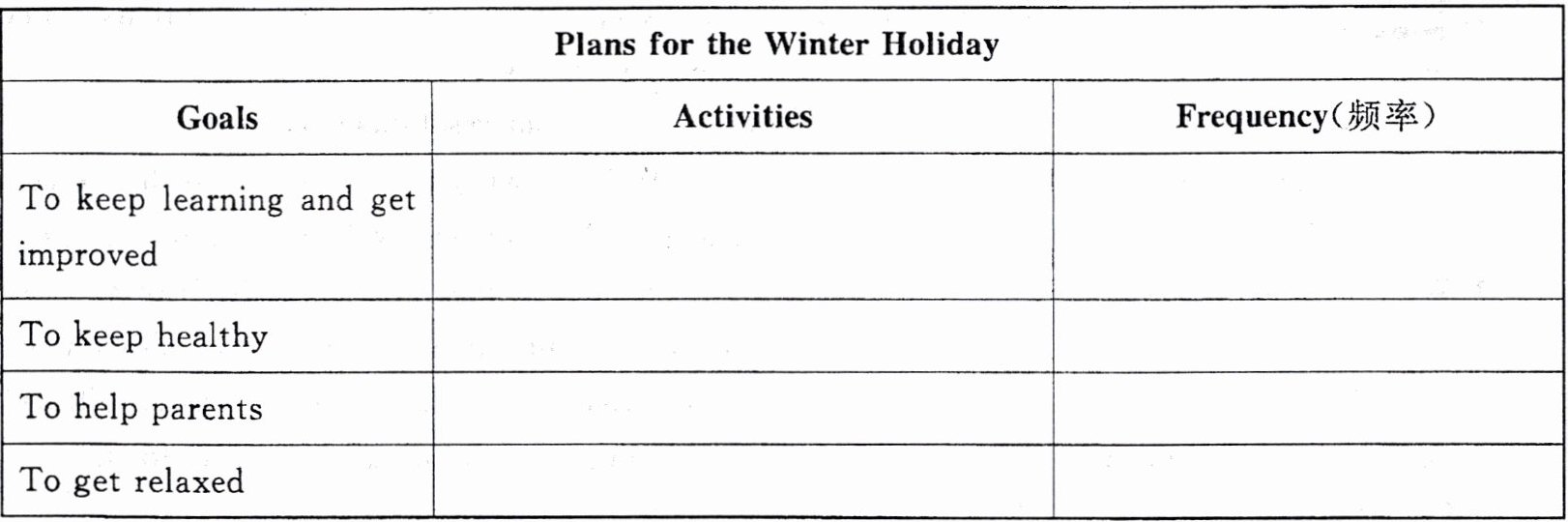 The winter holiday is coming. Do you have a plan for this vacation? Now, fill in the form to make a detailed plan to make sure you'll spend a meaningful holiday.