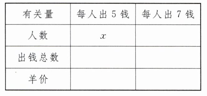 (2)根据等量关系可列方程为________,解得________.因此买羊的人数为________人,羊价为________钱.