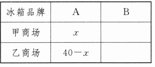 (1)请根据题意补全A,B品牌冰箱调配情况的表格(单位:台):