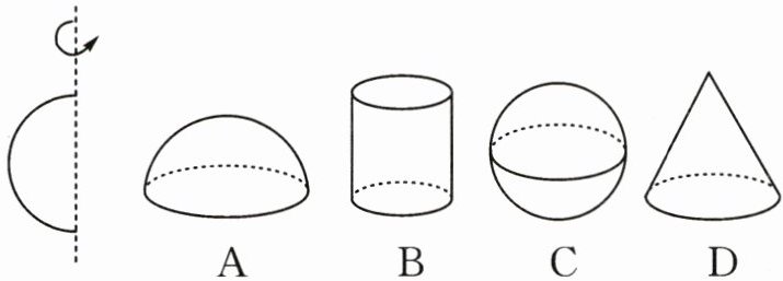 2. (2024·陕西)如图,将半圆绕直径所在的虚线旋转一周,得到的立体图形是(