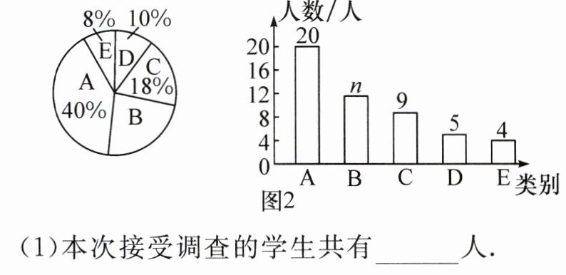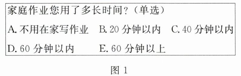 10. 随着双减政策的落实,同学们的家庭作业减少了.为了解同学们完成家庭作业需要的时间,某校数学兴趣小组随机调查了部分学生(问卷调查的内容如图1所示),并根据调查结果绘制了如图2所示的两幅统计图.