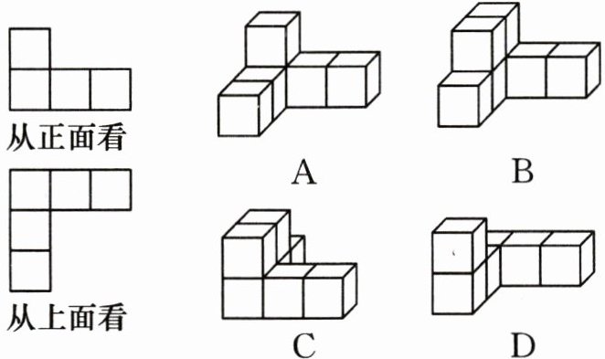 15. 小明用几个大小相同的小正方体搭成一个几何体,并画出“从正面和上面看到的这个几何体的形状图”来描述它的特征(如图).同学们仅依据小明的描述搭出四个几何体,其中不符合小明描述的是(
