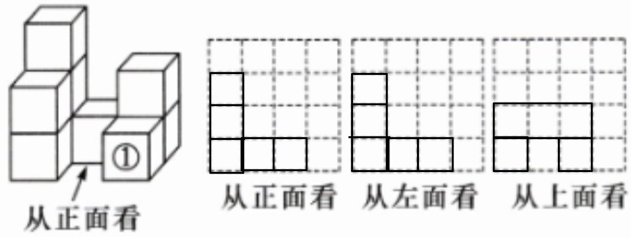 (2)将小正方体①移走后,得到一个新的几何体,与原几何体相比,从三个方向看到的形状图没有发生变化的是