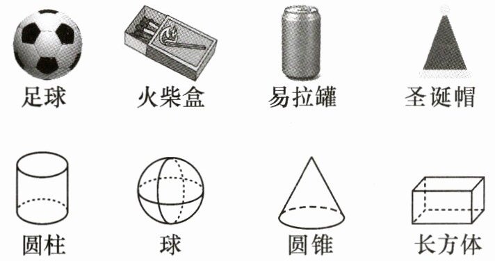 1. 把图中实物与类似它们的几何图形用线连接起来.
