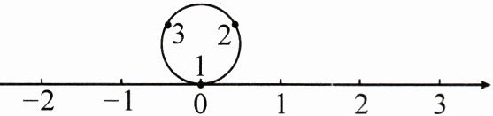 15. 如图,圆的周长为$3$个单位长度,该圆上的$3$个点将圆的周长平均分成$3$份,在$3$个点处分别标上$1$,$2$,$3$.先让圆周上表示数字$1$的点与数轴上表示$0$的点重合,再将圆沿着数轴向右滚动,则数轴上表示$2024$的点与圆周上重合的点上标的数字为(