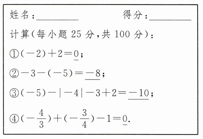 4. 如图所示的是某同学完成的作业,他的得分是(