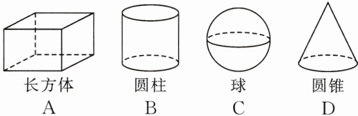 2. 围成下列立体图形的各个面中,每个面都是平的是(