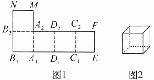 5. 图1是由五个边长都是1的正方形纸片拼接而成的,现将图1沿虚线折成一个无盖的正方体纸盒(图2)后,与线段FC₂重合的线段是