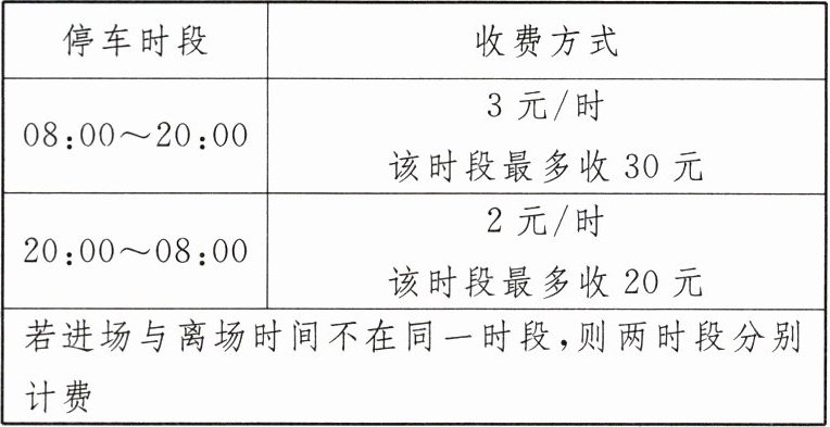 10. 乐乐停车场为 24 小时营业,其收费方式如下表所示:
