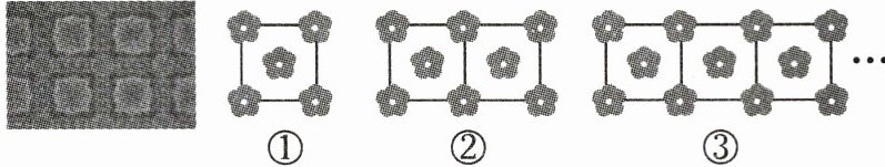 7. 莫高窟坐落于河西走廊西部的尽头——敦煌,是我国古代文明的璀璨艺术宝库,莫高窟保存壁画4.5万多平方米,具有独特的形式美感和艺术魅力。如图,这是莫高窟壁画纹样,小明发现,壁画纹样中还蕴藏着数学知识,其中第①个图案中有5个花朵图案,第②个图案中有8个花朵图案,第③个图案中有11个花朵图案……依此规律,则第n个图案中的花朵数为