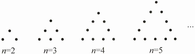 9. 如图,一些点组成形如三角形的图形。如果图形的每条“边”上有n(n>1)个点(包括两个顶点),那么当这个图形中点的总数S=2025时,n=