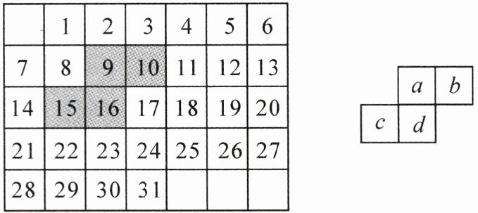 1. 如图,这是某月的月历,用带阴影的方框恰好框住四个数。若这样的阴影方框可以任意移动,且框住这张月历表中的4个数,设a表示的数是x,则这4个数的和为