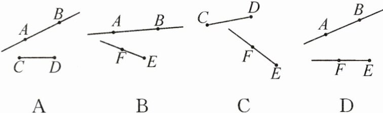 13. 直线 $ AB $、线段 $ CD $、射线 $ EF $ 的位置如图所示,则其中不可能相交的是(