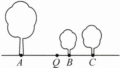 9. 如图,$A$,$B$,$C$三棵树在同一条直线上,小明正好站在线段$AC$的中点$Q$处,$BC=2BQ$.