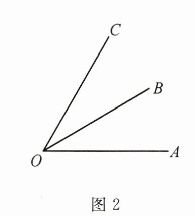 。如图2,OB是∠AOC的平分线,则∠AOB=________=$\frac{1}{2}$________(或∠AOC=2________=2________)。