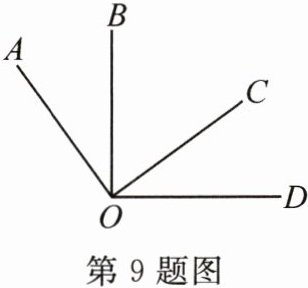 9. (2023·北京)如图,∠AOC=∠BOD=$90^{\circ}$,∠AOD=$126^{\circ}$,则∠BOC的度数为(