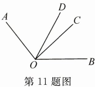 11. 如图,OD是∠AOB的平分线,∠AOC=2∠BOC,∠COD=$21^{\circ}20'$,则∠AOB的度数为