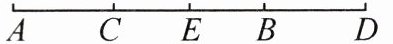 1. 如图,点 $ C $ 在线段 $ AB $ 上,且 $ AC:BC = 2:3 $,点 $ D $ 在线段 $ AB $ 的延长线上,且 $ BD = AC $,$ E $ 为 $ AD $ 的中点。若 $ AB = 40\mathrm{cm} $,求线段 $ CE $ 的长。