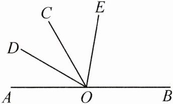 2. 如图,点 $ O $ 在直线 $ AB $ 上,$ OD $ 平分 $ \angle AOC $,$ \angle BOE = 2\angle EOC $,$ \angle AOD = \frac{3}{4}\angle EOC $,求 $ \angle AOD $ 的度数。
