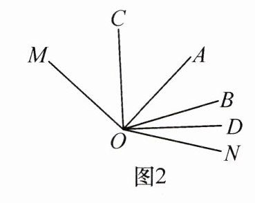 (2) 我们发现角的很多规律和线段一样,如图 2,已知 $ \angle AOB $ 在 $ \angle MON $ 内部转动,射线 $ OC $ 和射线 $ OD $ 分别平分 $ \angle AOM $ 和 $ \angle BON $。