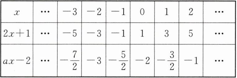 14. 观察下表,写出关于$x$的方程$2x + 1 = ax - 2$的解是