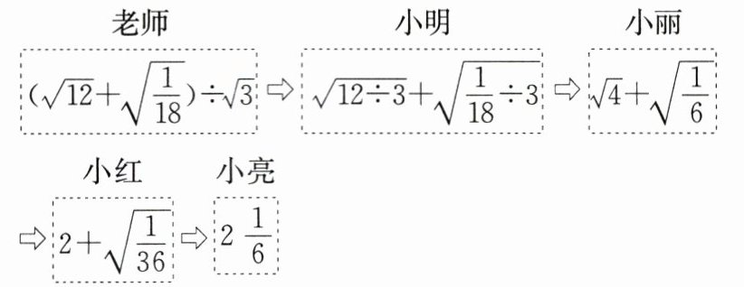 7. 【问题情境】在计算$(\sqrt{24}-\sqrt{\frac{1}{2}})-(\sqrt{\frac{1}{8}}+\sqrt{6})$时,小敏的解题过程如下: