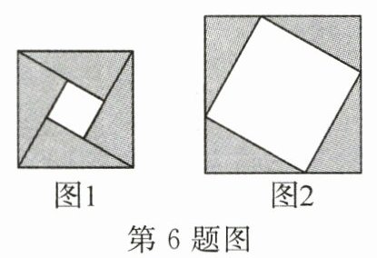6. (2024·眉山)图 1 是北京国际数学家大会的会标,它取材于我国古代数学家赵爽的“弦图”,由四个全等的直角三角形拼成. 若图 1 中大正方形的面积为 24,小正方形的面积为 4,现将这四个直角三角形拼成图 2,则图 2 中大正方形的面积为(