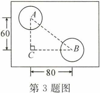 3. 一个外轮廓为长方形的机器零件平面示意图如图所示,根据图中标出的尺寸(单位:mm),可得出两圆孔中心 A,B 之间的距离为