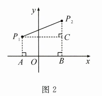 (2) 如图2,$ P_1C = x_2 - x_1 $,$ P_2C = y_2 - y_1 $,由勾股定理,得 $ P_1P_2 = $