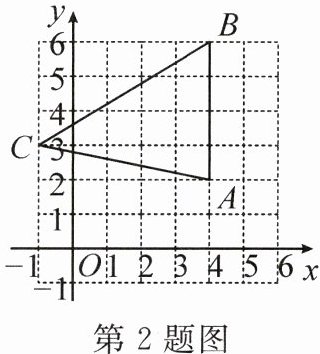 2. 如图,△ABC三个顶点的坐标分别为A(4,2),B(4,6),C(-1,3),则△ABC的面积为____.