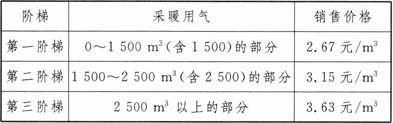 4. 北方某市对城市居民该冬季的采暖收费标准如下表:(以户为单位)