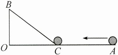 8. 如图,$\angle AOB = 90°$,$OA = 18\ dm$,$OB = 6\ dm$,一机器人在点 B 处看见一个小球从点 A 出发沿着 AO 方向匀速滚向点 O,机器人立即从点 B 出发,沿直线匀速前进拦截小球,恰好在点 C 处截住了小球。如果小球滚动的速度与机器人行走的速度相等,那么机器人行走的路程 BC 是多少?