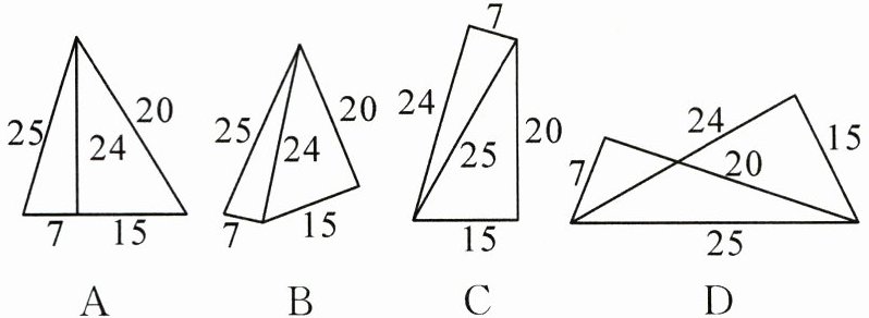 4. (教材 P14 随堂练习 T1 变式)有五根小木棒,其长度分别为 7,15,20,24,25,现将它们摆成两个直角三角形,其中正确的是(
