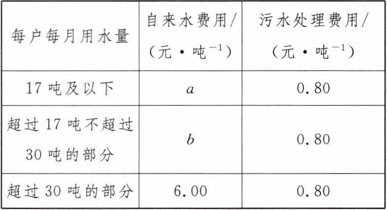 (2)$30$吨的水费为$17 × 2.2 + 13 × 4.2 + 30 × 0.8 = 116$(元).$\because 184 > 116$,$\therefore$小王家$6$月份用水量超过了$30$吨.设小王家$6$月份用水$x$吨.根据题意,得$116 + 6(x - 30) + 0.8(x - 30) = 184$,解得$x = 40$.答:小王家$6$月份用水$40$吨.