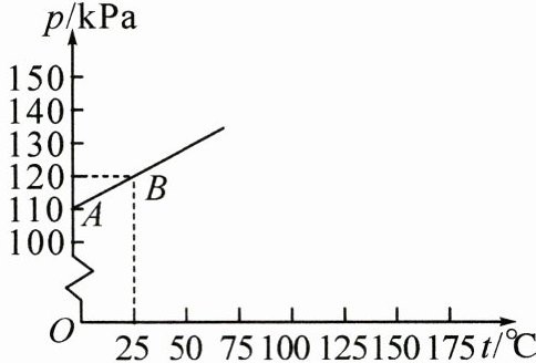 8. (教材P132新增习题T6变式)科学家探究出一定质量的某气体在体积不变的情况下,压强$p(kPa)$是温度$t(^{\circ}C)$的一次函数,其图象为如图所示的射线$AB$。