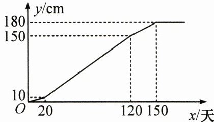 7. 某种藤类植物四个阶段的平均长度$y(cm)$与生长时间$x$(天)的函数关系图象如图所示。当藤蔓长度大约在$115cm$时,植物进人浆果生长期,此时植物的生长时间是(