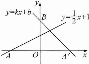 4. 如图,直线$y = \frac{1}{2}x + 1$与$x$轴交于点$A$,点$A$关于$y$轴的对称点为点$A'$。设经过点$A'$和$y$轴上的点$B(0,2)$的直线的表达式为$y = kx + b$。