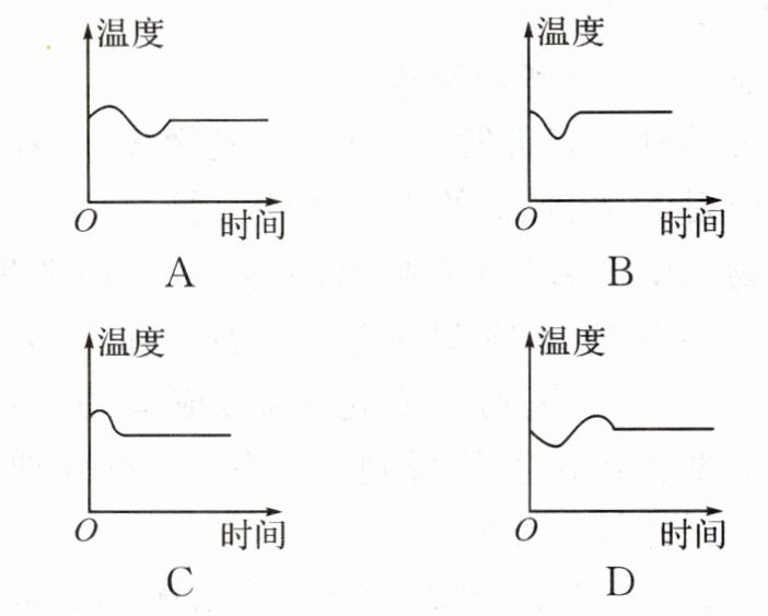10. 在室温恒定的教室内,小明在温度计的玻璃泡上涂抹少量与室温相同温度的酒精,观察温度计的示数变化。如图表示温度计示数随时间变化的图像中,可能正确的是(