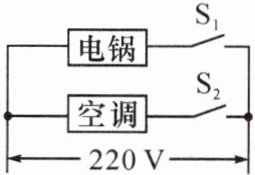 (2)开关S₁和S₂都闭合,电锅和空调都正常工作,总功率: