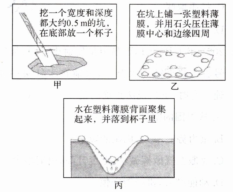 1. 在沙漠中,可以利用如图所示的方法应急取水,此过程中发生的物态变化是先