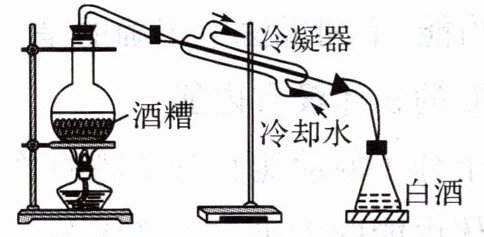 14. (2024·泸州改编)蒸馏法在酿酒过程中得到广泛应用,如图所示为蒸馏过程中的原理图,烧瓶内装有含酒精和水的酒糟,在蒸馏的过程中,涉及的物理知识的相关说法正确的是(