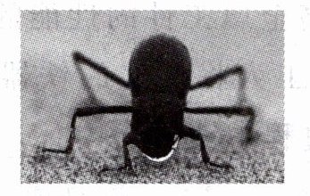 2. 在干旱的沙漠中,甲壳虫掌握了一种独特的获取水的方法。日落以后的几个小时,它们将头插进沙里,然后背朝着晚风吹来的方向,水珠就会在甲壳虫的背上形成(如图所示),当水珠越聚越多时,这些水珠就会沿着弓形背滚落人甲壳虫的嘴中。根据材料中所给的信息及所学的内容,回答下列问题: